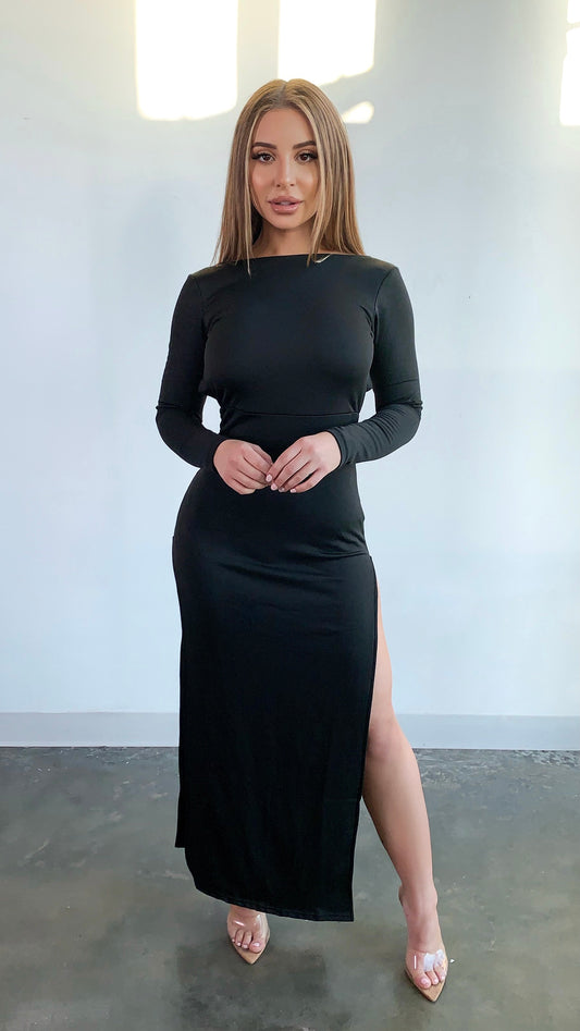 Kylie Long Sleeve Cut Out Dress - Heather Grey
