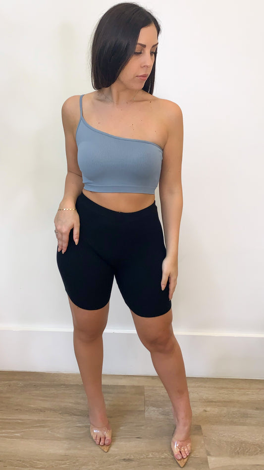 Basic Cami One Shoulder Crop Top - Neon Yellow